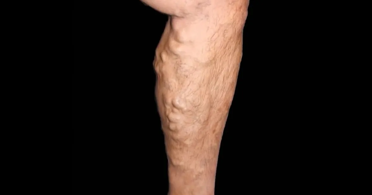 – أوردة سطحية ظاهرة ومتعرجة.