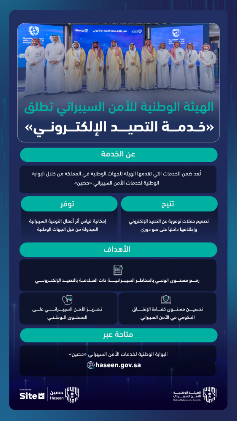 إطلاق خدمة التصيد الإلكتروني لتعزيز الأمن السيبراني للجهات الوطنية